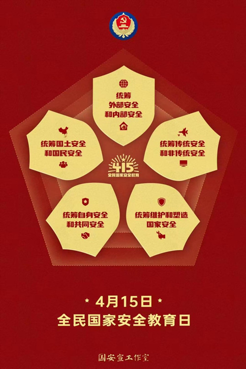 2023年4月15日是第八個全民國家安全教育日。活動主題為:“貫徹總體國家安全觀,增強(qiáng)全民國家安全意識和素養(yǎng),夯實(shí)以新安全格局保障新發(fā)展格局的社會基礎(chǔ)。”
